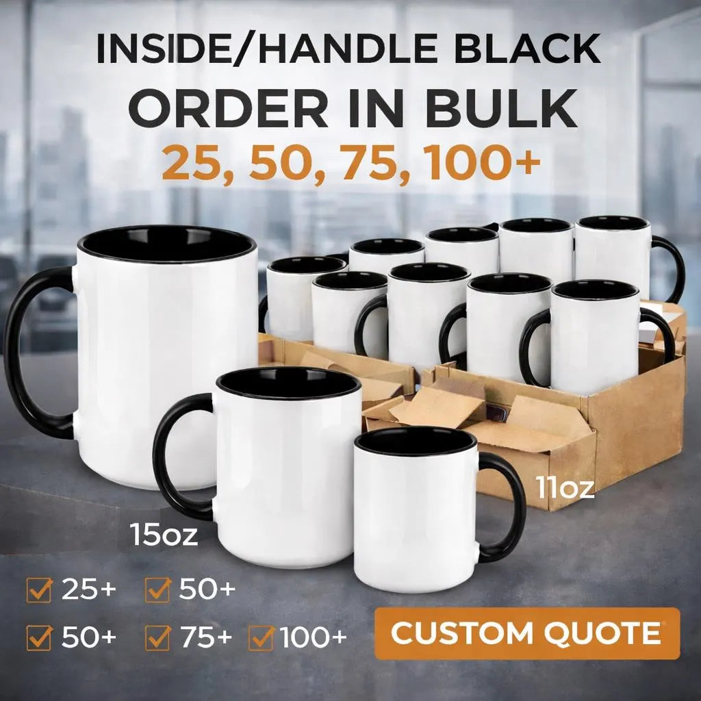 Choose a ceramic sublimation coffee mug with a black inside and handle that adds motivation, elegance, and personality to every sip. Order today and make coffee time inspiring. ☕